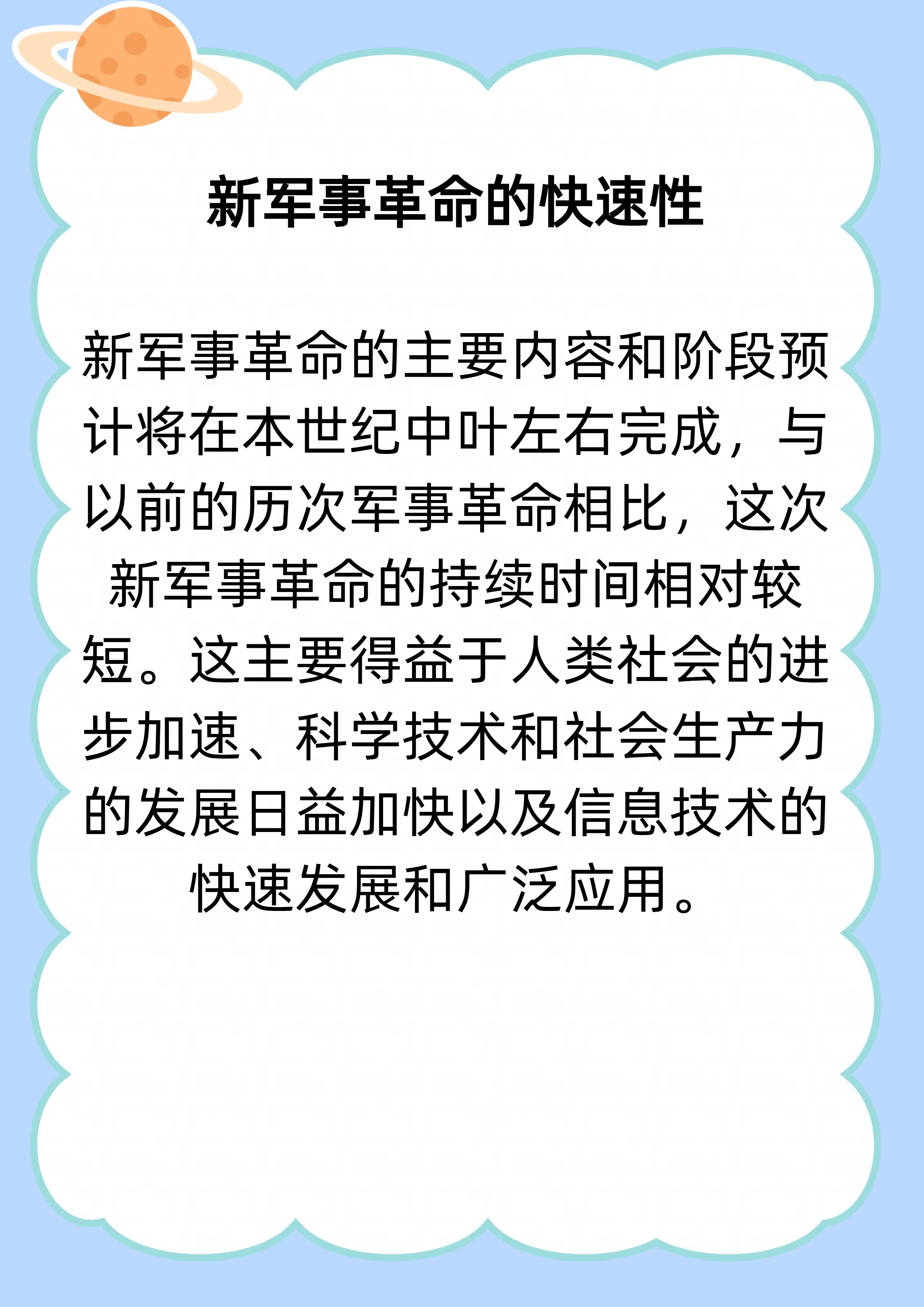 新軍事變革是一個全面、深入的過程,涵蓋了信息化、智能化、無人化等多個方面,為了適應新的安全環(huán)境和作戰(zhàn)需求,各國需要加大投入力度,推進新軍事變革的進程,還需要加強國際合作與交流,共同應對全球性安全挑戰(zhàn)。