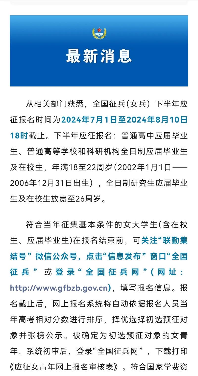 3、報名入口官方網(wǎng)站:女性可通過搜索引擎查找“女兵報名入口官網(wǎng)”,或者訪問國家征兵網(wǎng)等官方網(wǎng)站獲取詳細的報名信息。