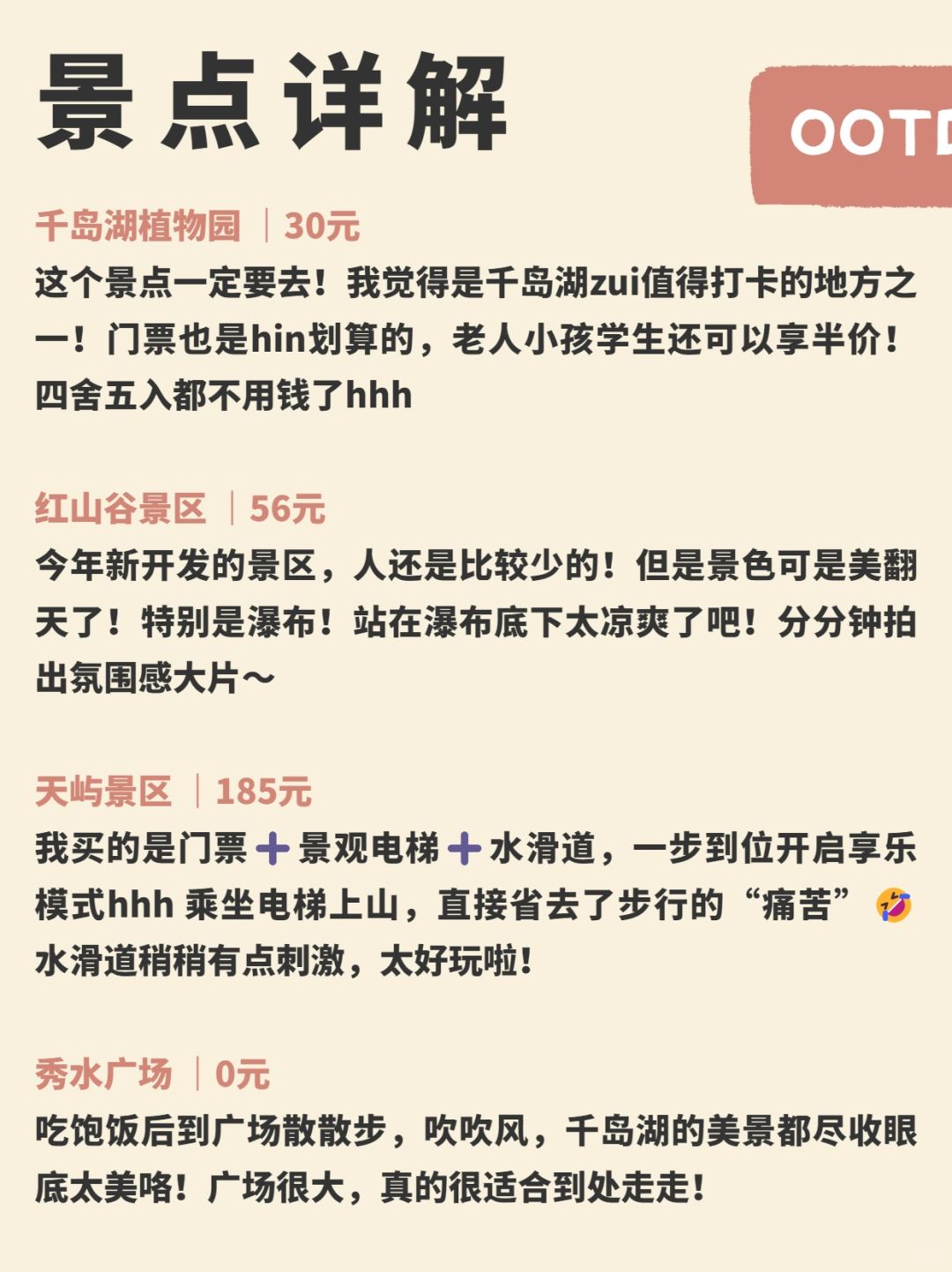 關(guān)于千島湖一日游費(fèi)用詳解,具體費(fèi)用因個(gè)人消費(fèi)習(xí)慣和行程安排而異。通常包括交通、門票、餐飲和住宿等費(fèi)用。大致費(fèi)用范圍在幾百到千元不等。游客可以選擇乘坐船只游覽湖區(qū),參觀不同島嶼,并享受當(dāng)?shù)孛朗?。還需考慮其他自費(fèi)項(xiàng)目,如選擇高端酒店或購買紀(jì)念品等。詳細(xì)費(fèi)用需根據(jù)個(gè)人預(yù)算和行程安排而定。千島湖一日游,究竟需要多少錢,需根據(jù)自身情況具體計(jì)算。