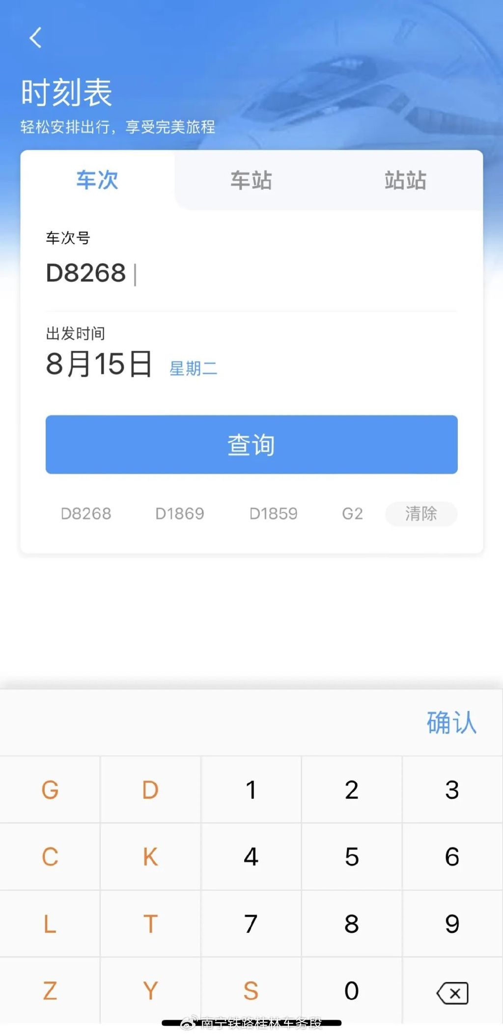3、選擇查詢(xún)方式,如按車(chē)次查詢(xún)、按站點(diǎn)查詢(xún)等。